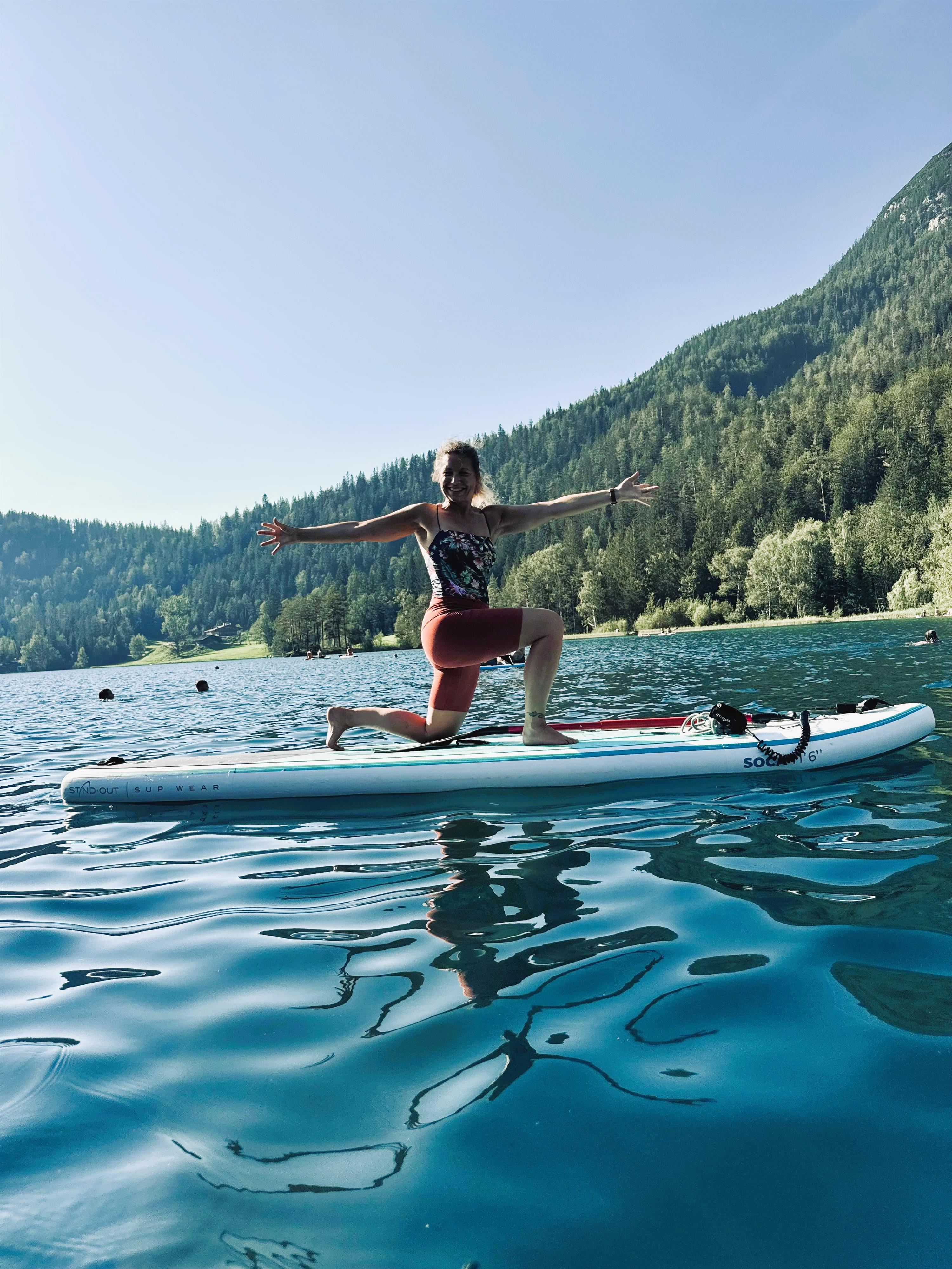 Zusätzliche Kosten: Für den SUP-Verleih zzgl. € 15,00 und den Eintritt ins Strandbad Hintersteiner See € 2,00 Sondertarif (nur für die Dauer der Yogastunde) oder den regulären Tageseintritt bei längerem Aufenthalt.