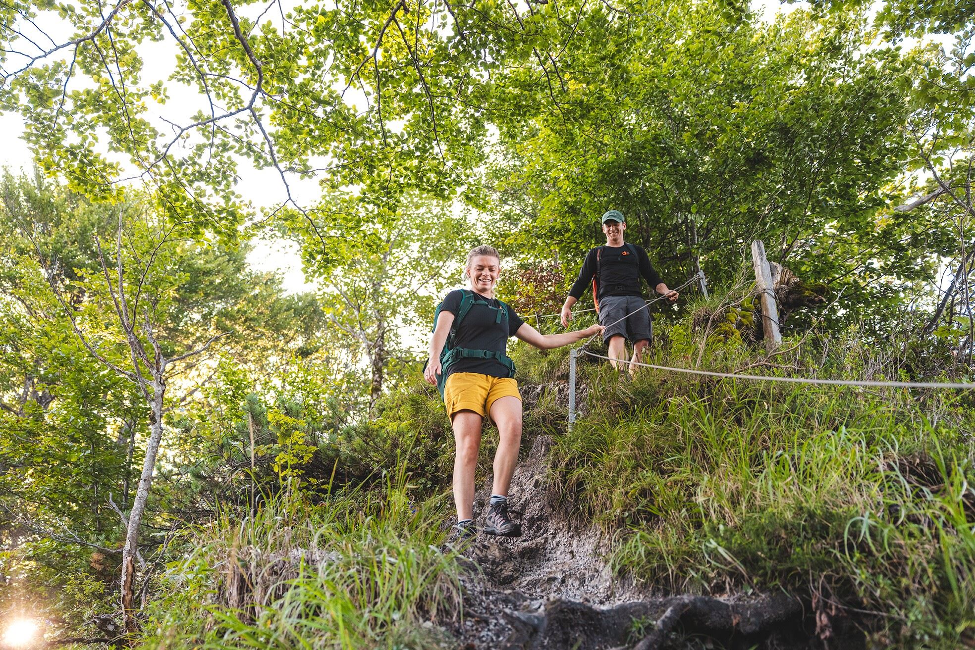 Rucksack, feste Wander-/Bergschuhe mit griffiger Profilsohle, dem Wetter angepasste Wanderbekleidung (atmungsaktiv), Wechselbekleidung, Sonnenschutz (Sonnenbrille, Sonnencreme, Lippenschutz, Kopfbedeckung), Regenschutz (Regenjacke/Poncho, Knirps, Rucksackschutz), Kälteschutz (Mütze, Handschuhe), Verpflegung (ausreichend zu Trinken und Jause), ev. Wanderstöcke (höhenverstellbar), Erste-Hilfe-Ausrüstung inkl. Rettungsdecke & Biwaksack, Mobiltelefon mit vollgeladenem Akku, Stirnlampe, Plastikbeutel für Abfall, Wanderkarte, Tourenbeschreibung und Informationsmaterial (GPX-Track), Ausweis, Versicherungskarte, Bargeld